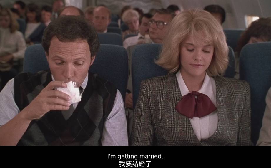 恰巧,哈利和莎莉乘的是同一班飞机。哈利在飞机上和莎莉搭话,然而一番尴尬的寒暄后,他们仍然没什么共同语言。只是当哈利告诉莎莉他快要结婚了的消息时,莎莉着实吃了一惊,随即忍不住大笑出声。