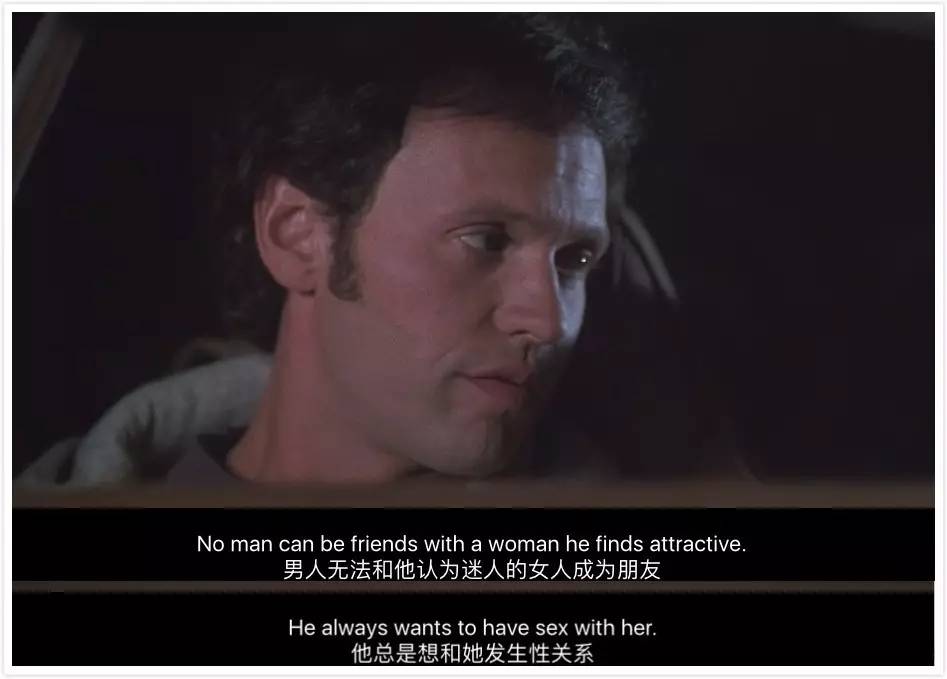 莎莉认为他的观点可笑至极,表示自己就拥有很多异性朋友,然而哈利只是给出了“你只是不知道他们想睡你罢了”的结论。