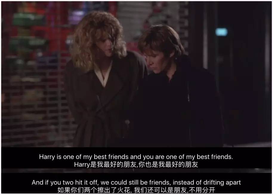就这样,莎莉和哈利成为了好朋友。他们会一起出去逛街觅食,会在各自家中看着同一档电视节目聊天,会在睡前煲电话粥互道晚安,也会和对方倾诉自己对前任的想念。