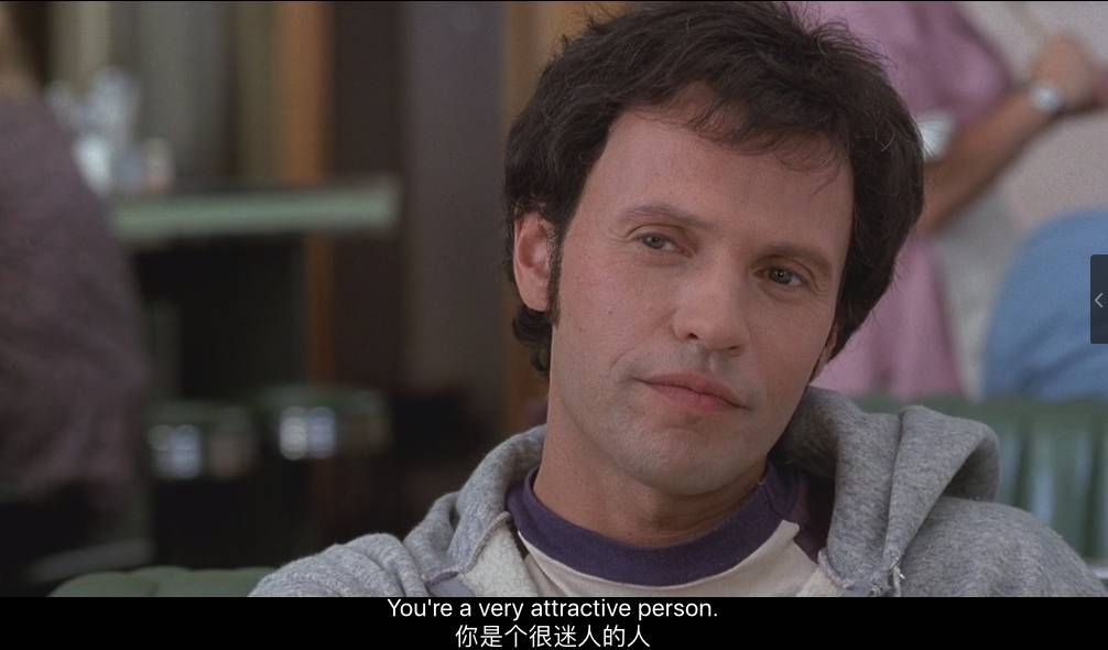 二人中途停下在一家餐厅吃饭,哈利饶有兴味地看着喋喋不休地跟服务员提出关于餐食的各种奇怪要求以及在结账前一本正经地按照比例清算着两人各自该付多少钱的莎莉,冷不丁地冒出一句:其实你很迷人。