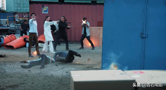 接下来就更夸张了,反派毒贩变性人小姐姐一枪打爆油桶炸翻集装箱。