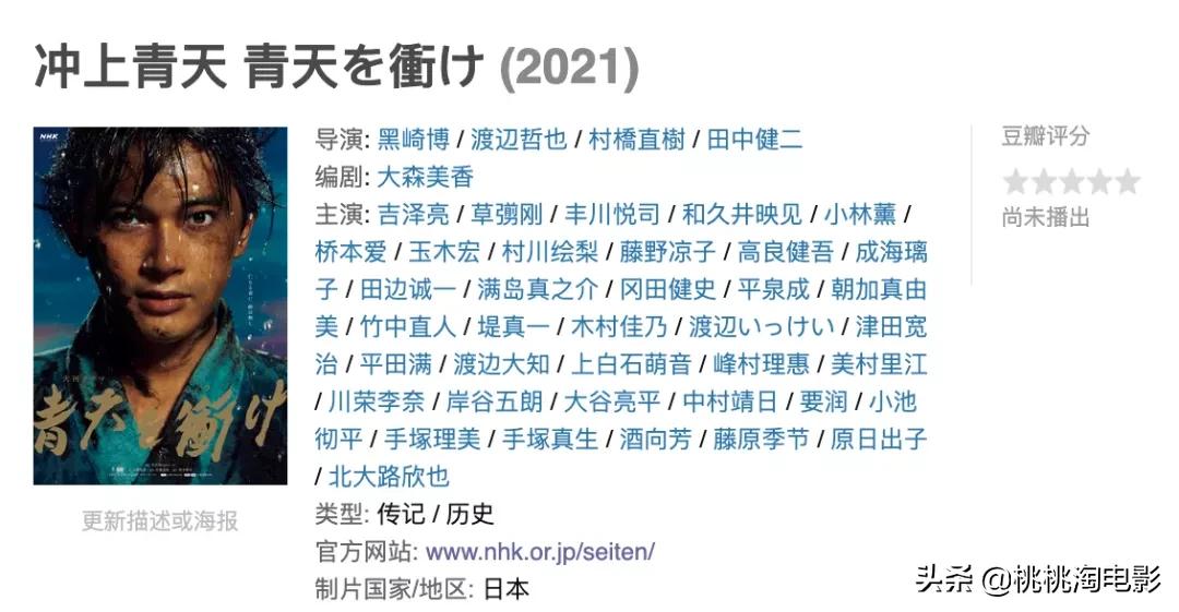 nhk 2021年的全新大河剧,吉沢亮主演, 草彅刚、丰川悦司、和久井映见、小林薰、桥本爱等等共同出演。