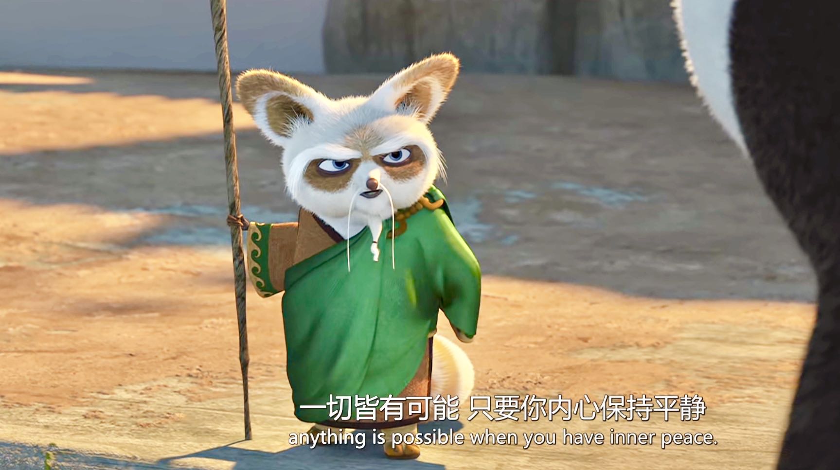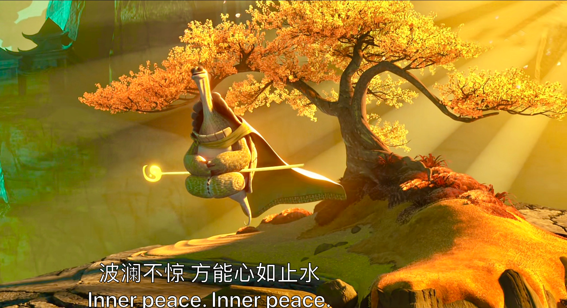 当有一天,浣熊师傅认识到问题出在自己身上,并非外在的阿宝身上时,他领悟到了心如止水。