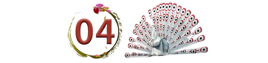 阿宝在宫门城宫殿里,无意间看到了孔雀翅膀上的火红圆圈。