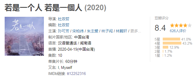 《若是一个人》目前豆瓣评分8.4,口碑亮眼。