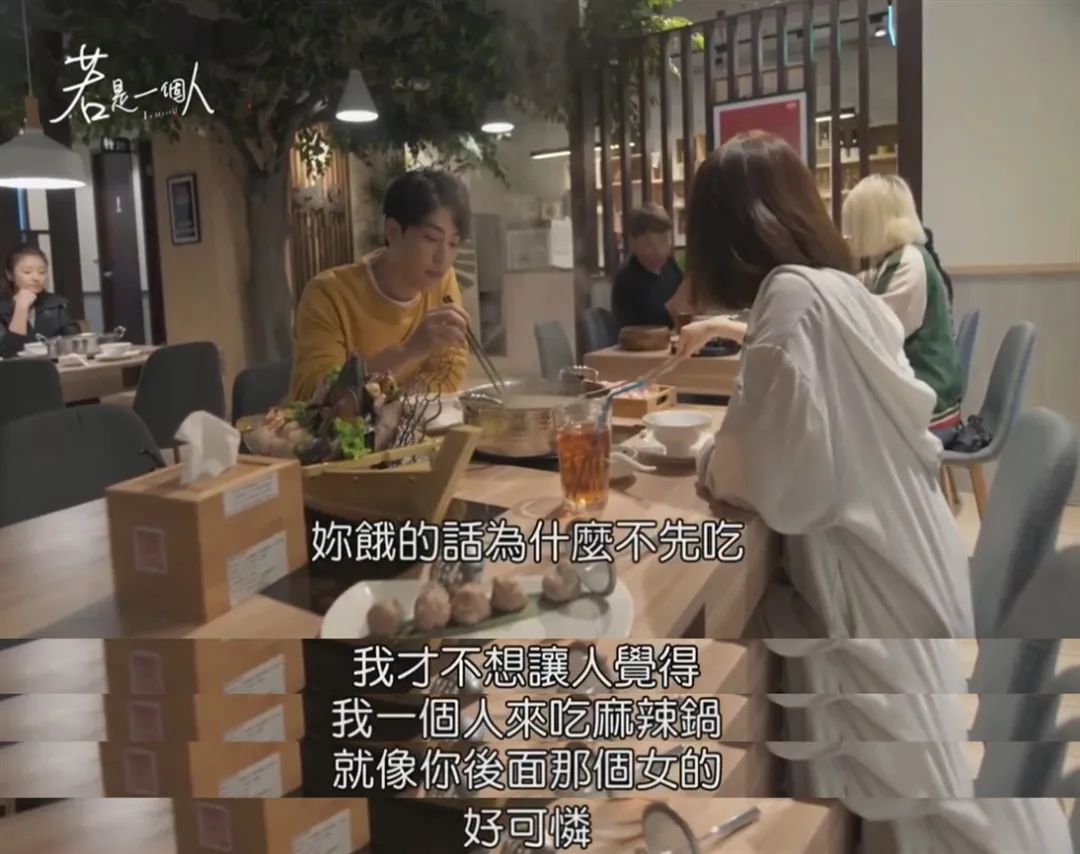 而在邻桌的女主方佳莹看来,一个人来吃火锅多孤单、多可怜啊。
