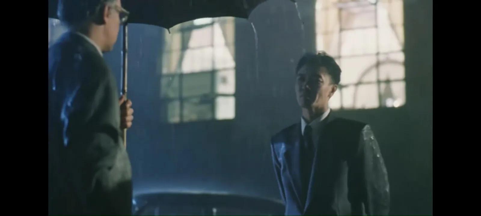 陆光达(李幼斌老师饰)与苏联专家漫步在雨中。