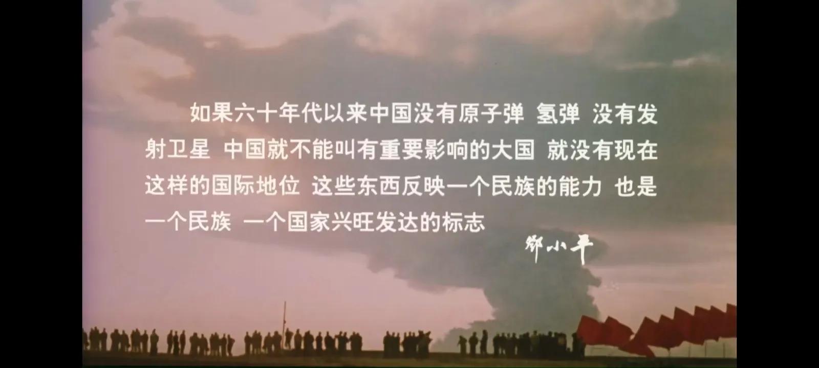 靶场开始誓师,冯石高昂具有力量的开始发言:“同志们,国内的仗打完了,国外的仗也打完了。一、没让披红挂彩开庆功会。二、没让回家看望爹娘。一声令下,你们跟着党跑到了这大戈壁滩上。至今,家里的亲人不知道我们在哪!不知道我们是死是活……就因为在朝鲜,美国人用一个小玩意儿,在咱们头上悬了好几年,悬着就。动不动就嚷嚷着要给我们做一个外科手术。苏联专家也撤走了,瞧不起我们呢!没有这个东西我们中国人的腰杆子就挺不直。就没地位!没和平!就不能踏踏实实的过咱们的日子。所以,现在,中央军委指示,可以把这个秘密告诉大家了。我们,就是要在这个大戈壁滩上,用我们自己的双手,搞出我们中国自己的!原子弹!”