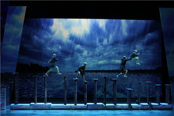 雨夜飞渡一幕中,两道高清幕布,配合多媒体、音效、光影,湍急的水流营造出紧张的氛围。当几根桥桩轰然倒下,战士们飞跃3米多的距离,稳稳落在另一端的桥桩上时,全场响起欢呼和掌声。剧情、人物形成呼应,各个场景更为逼真更加震撼,充分展现解放上海的艰苦卓绝。
