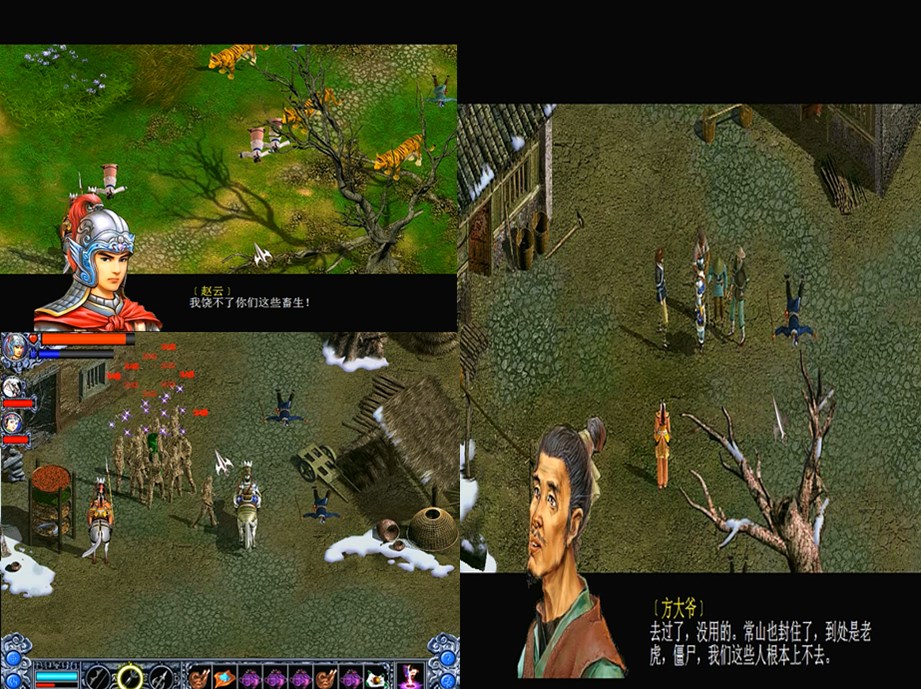 回到梦开始的地方,发现一片狼藉,百姓死伤惨重。把外面的老虎杀光,进入村子后,有发现僵尸围攻百姓。这里的百姓防御和血量真高,赵云去被围都有点顶不住,但是百姓被围殴很久居然一点事都没有,僵尸的伤害在百姓身上就像刮痧。