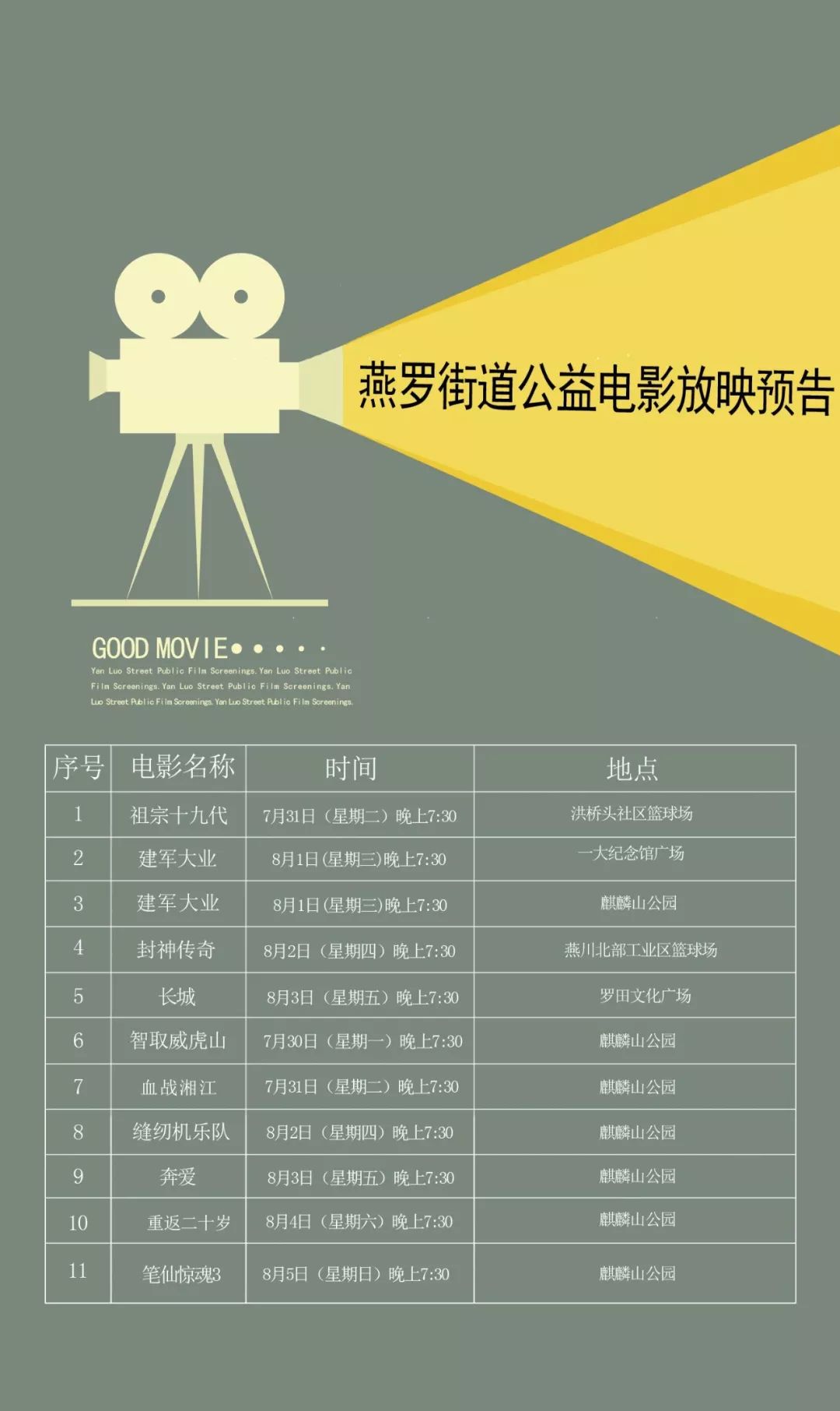麒麟山公园、正大安工业园、下山门社区、燕川文化广场、力可兴电子有限公司等十四处流动放映点