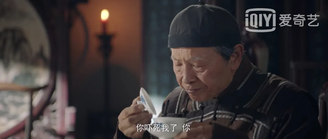 镜头切换到另一边,盗墓头头回到家里,给老舅鉴定他偷来的宝贝,原来老舅曾是宫里的太监,对宝物之类一眼便能鉴别真假。