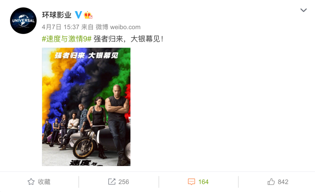 接力棒交到了环球大片《速度与激情9》的手中,