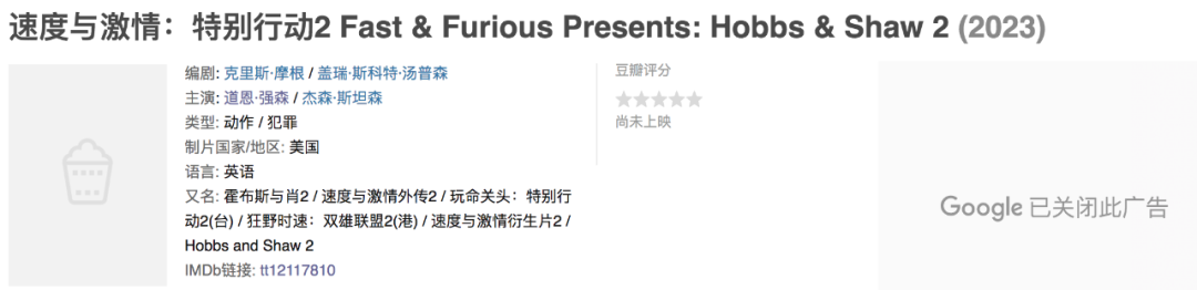 番外衍生作《速度与激情:特别行动2》暂定2023年上映。