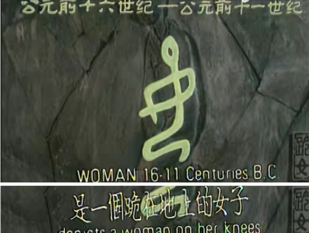 紧接着,是一段说文解字。从甲骨文开始,“女”字是一个跪在地上的女子,两手温顺谦卑地置于胸前。然后,不断演化,从文字到雕刻,千百年来,女性的人生在出嫁,生产,劳作,哭丧之中,一代一代,由鲜活到陨灭。