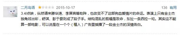虽然有曾经以一部《失恋33天》为内地影市首开先河的导演滕华涛助力,为名作家落落的处女作担当监制,但还是无法阻止该片烂掉的命运。更有网友戏称该片为“不及格的白开水电影,白瞎一碗叫金士杰的高汤”。毕竟是作家拍电影,就算是滕导也无法把你拉出烂片的泥潭啊。
