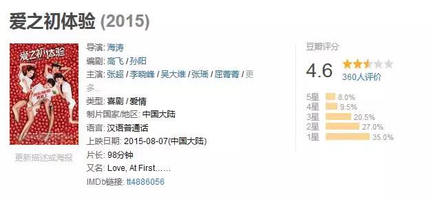 原定于8月7日上映的电影《爱之初体验》,上映四日票房仅315万,排片仅占2%,片方只能宣布紧急撤档。打着“性”和“喜剧”的旗号,欲在大片纷争的暑假档占据一席之地,却只能深深无力的沦为“票房炮灰”。