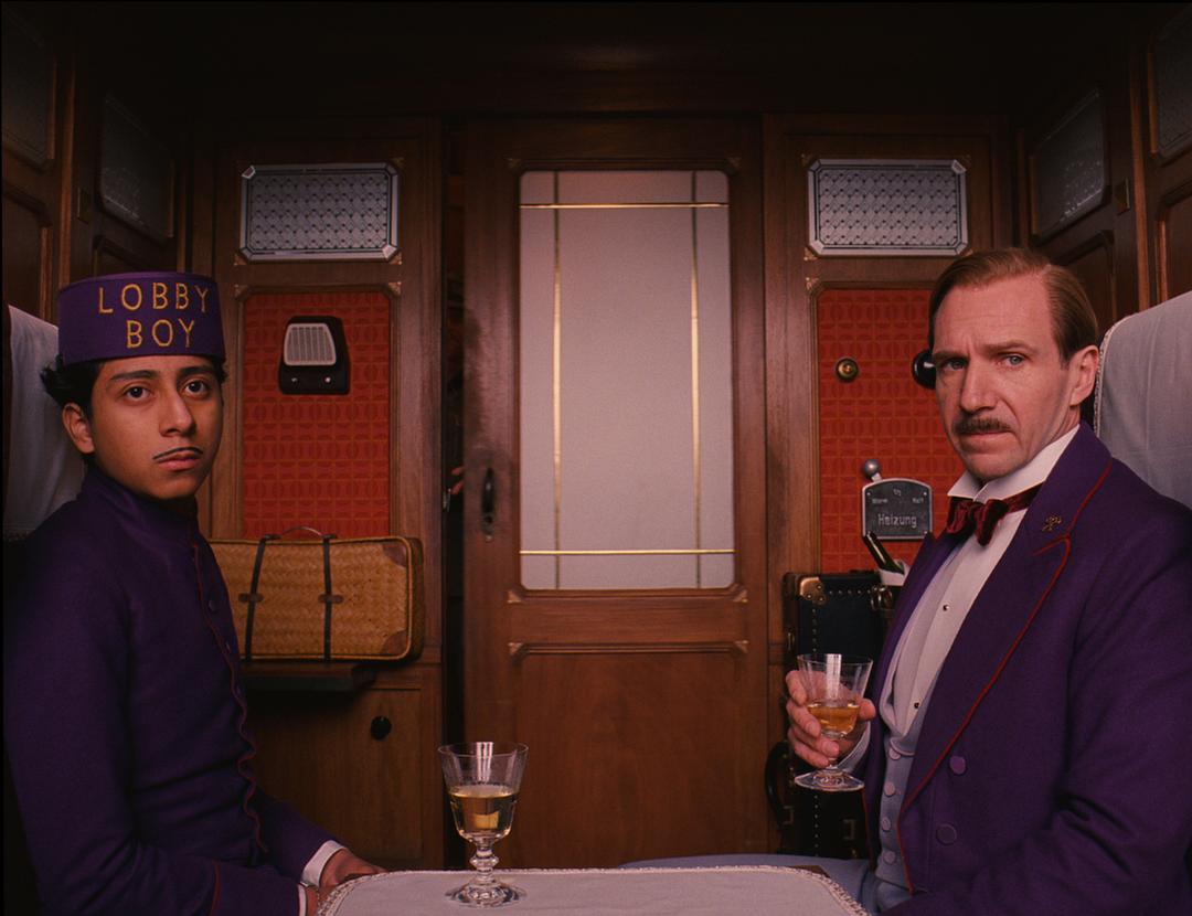 在电影中饭店经理古斯塔夫梳着一丝不苟的发型,身着昂贵的紫色燕尾服。在过去的欧洲,紫色因为难以保存,是一种代表着特权阶级的颜色。古斯塔夫的情人,有钱贵妇 d 夫人在神秘死亡后,留下了一封遗书,愿意将自己的全部财产赠予古斯塔夫。穆斯塔法是饭店的新晋门童,在饭经理古斯塔夫的引导下,也渐渐地开始了解饭店内部一些不为人知的的秘密。