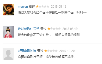 《吉星高照2015》豆瓣评分仅3.2分,62%观众打一星,实在烂得没眼看,有网友表示:“这算啥喜剧片子呀,搞笑桥段都很不搞笑。”“原以为星爷会给个面子在最后一刻露个面,呵呵~~”“曾志伟也救不了这烂片,一部彻头彻尾的闹剧”