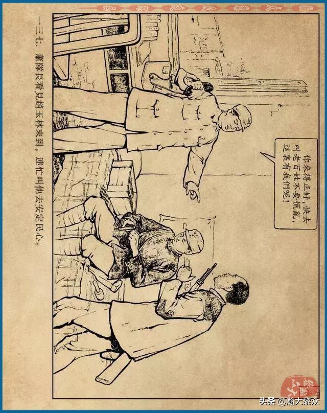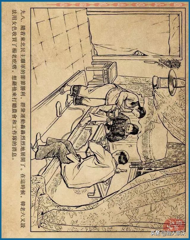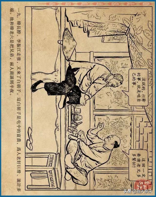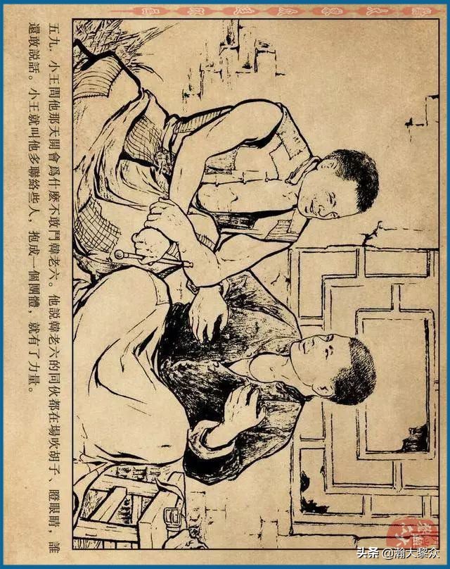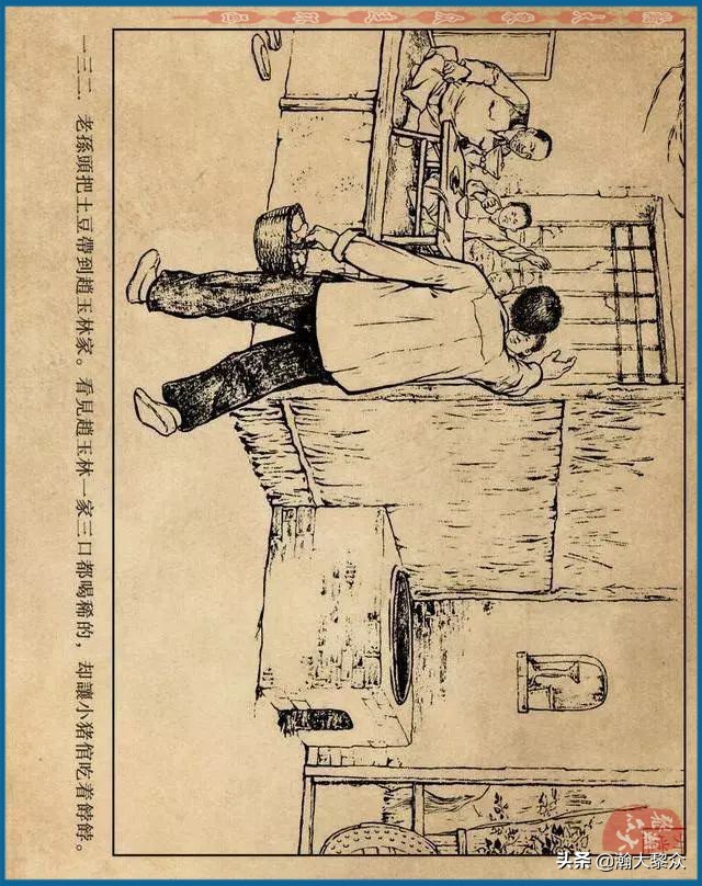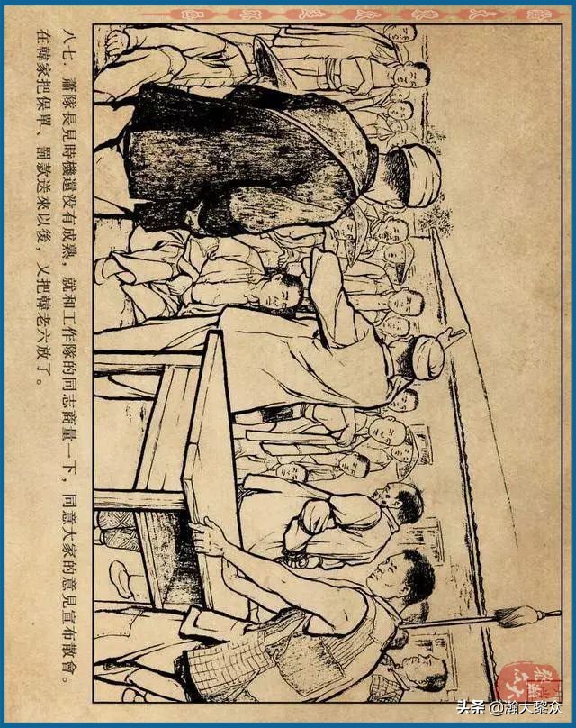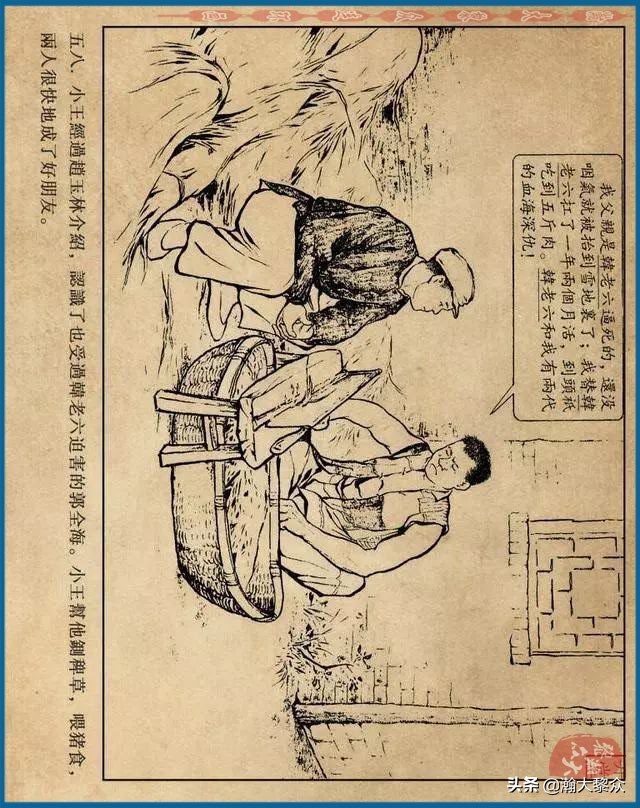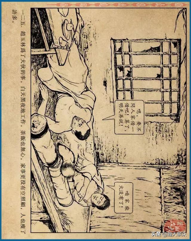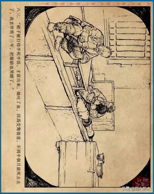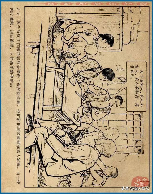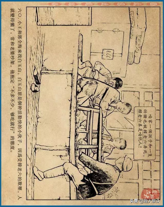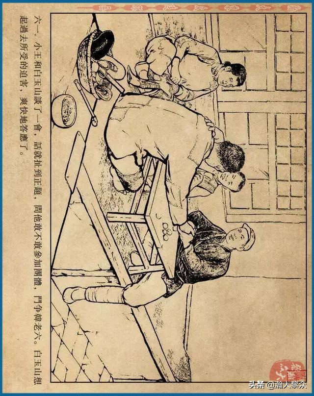 《暴风骤雨》根据周立波同名小说改编,原书曾荣获斯大林文学奖。连环画由刘锡永和夏书玉两人合作,当时属于中青结合,绘画互有提携,取长补短,堪称合作的佳品。初版时间:新美术出版社,1954年6月。为提携弟子,刘锡永配景配了很多,连棉被上的图案都甘愿画,毫无架子,值得尊敬。