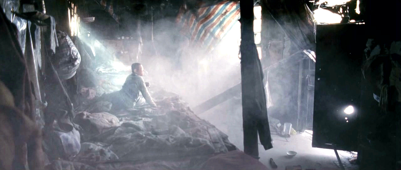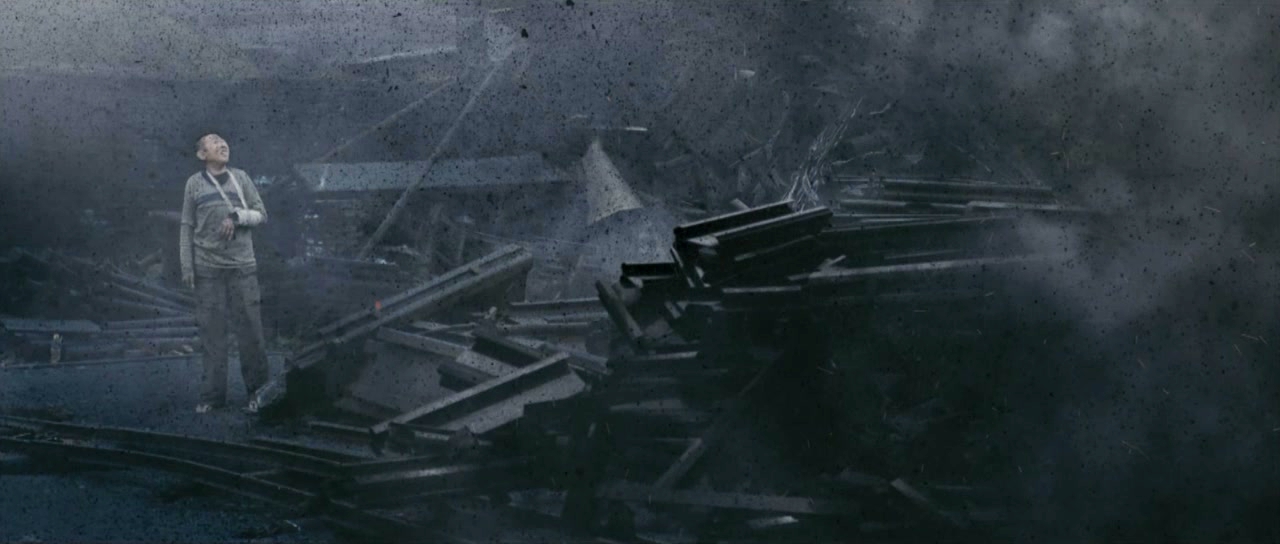 祥子被爆炸声震醒,愣着看塌掉的矿工宿舍 矿井被炸后,周围一片废墟 隆烟滚滚,黑色的烟雾弥漫,看不清前方爆炸的那一刻,地动山摇,祥子正在睡觉,一下宿舍就塌了,他走出门去,看到的是一片废墟,眼前所见像是一场硝烟弥漫的战争过后,而他是最后的一个幸存者,劫后余生,他完全愣住了,不明白都发生了什么,走在这废墟里,隆烟滚滚,烈火还在燃烧,伴有远处小小的爆炸声,黑色的烟雾弥漫,看不清前方的世界......这段拍得太牛逼了,其带给我的震颤程度,不亚于一部战争大片。