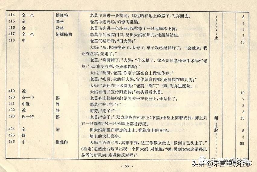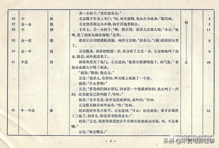 通过这几张图片,我们可以看到,分镜头剧本里把拍摄的内容表述得非常具体,什么时候机器移位,什么时候出现画外音全部标注出来。分镜头剧本不仅是导演的工作台本,对演员来说,也是非常重要的,他(她)可以根据标注掌握表演的情绪,更好地塑造角色。分镜头剧本的好坏也非常考验导演的功底,导演的拍摄想法全部会融入到其中。