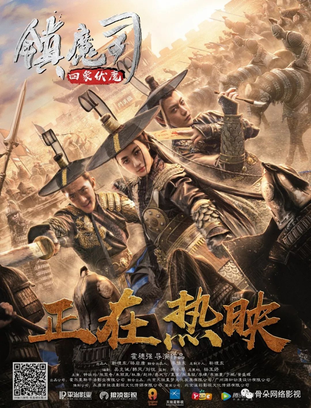 网大《镇魔司·四象伏魔》由霍尔果斯平治影业出品,狼凌影视联合出品,天狼星电影承制,导演霍穗强执导,讲述的是大赵王朝镇魔司除魔卫道,守护天下太平的武林传奇故事。以武侠结合魔幻元素是这部作品的亮点之一;在人物设定上,片中无论主配,人物性格明显,各有所长。截至目前,网大作品《镇魔司·四象伏魔》上线3天,累积播放量达到了2446万。该片位居第25周骨朵网大周榜第一名。