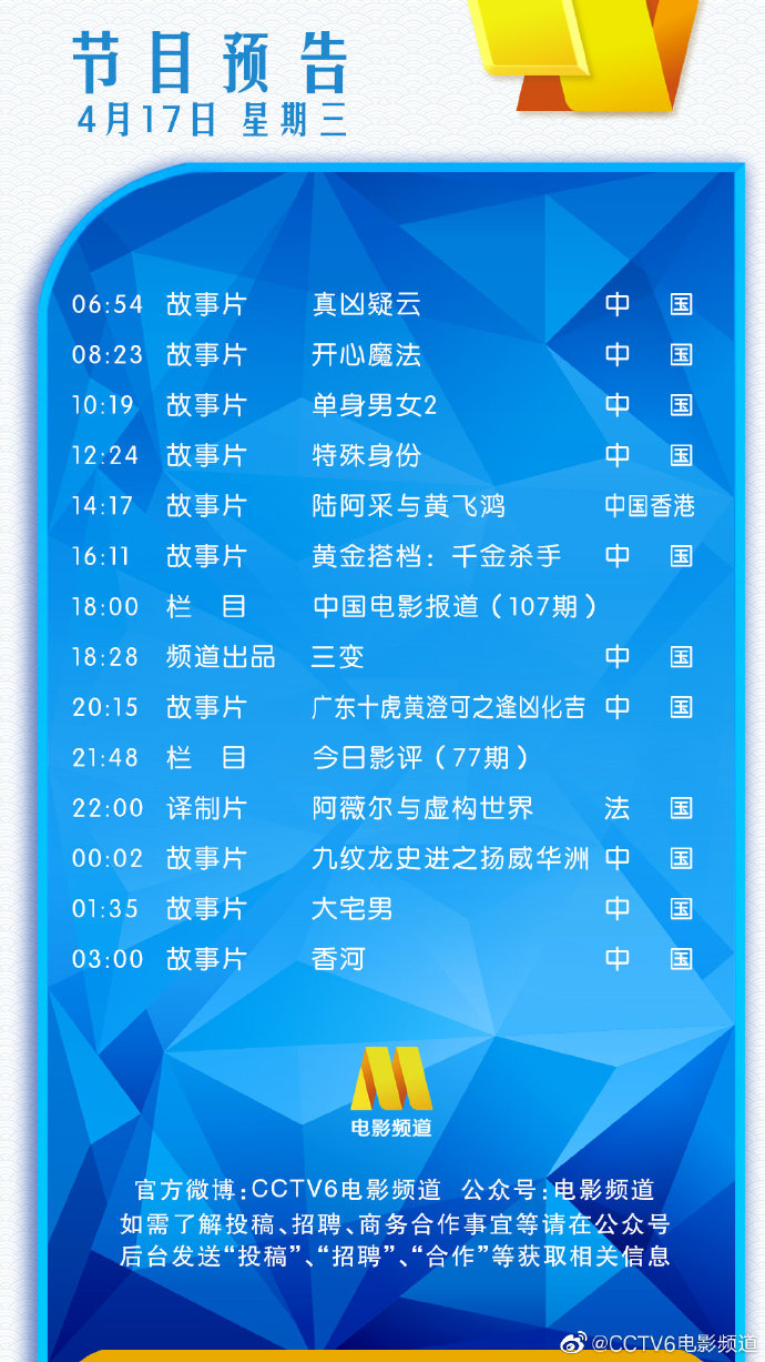 4月17日电影频道播出节目单!10:19 古天乐/吴彦祖《单身男女2》
