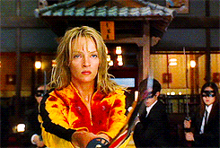而让你印象深刻的绝对会是乌玛·瑟曼身穿黄色套装,手握日本刀——