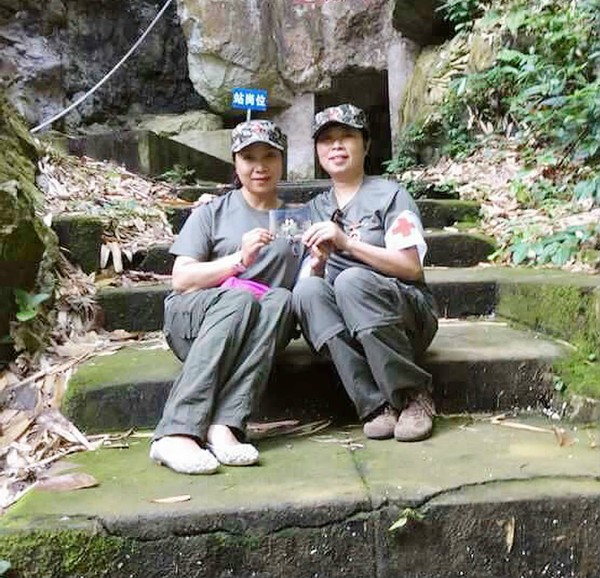 张茹(左)和战友寻访当年的野战医院曼棍洞