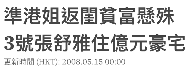 比如08年的冠军张舒雅,被港媒称为“最hea港姐”(hea源于英文的hang around,意指“游荡”“无所事事”的人)。
