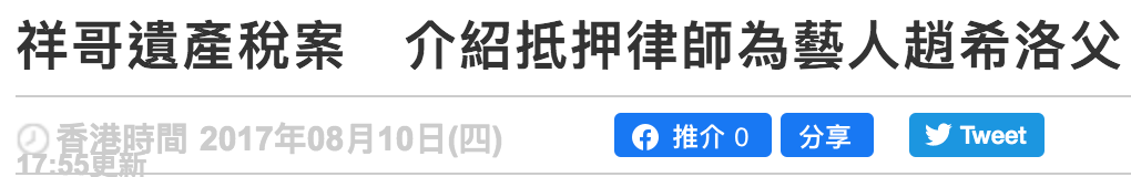 " ▲ 直到17年新马师曾邓永祥的遗产税务上诉案件,媒体才揭露出庭作证的律师赵崇康正是艺人赵希洛的父亲。