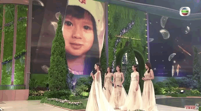 ▲ 站在舞台上的她也许没有其他选手那么游刃有余,但拘谨反倒带出点可爱。她说,爸爸在她没出生前就希望她参加港姐选美了,而今总算是如愿以偿。背后大荧幕上正是她的童年照,炯炯有神的大眼睛、高挺的鼻梁,标准从小美到大。