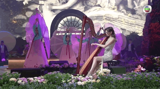 ▲ 她在决赛当天表演的才艺是竖琴,这算的上是有钱人的才艺表演了吧。
