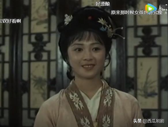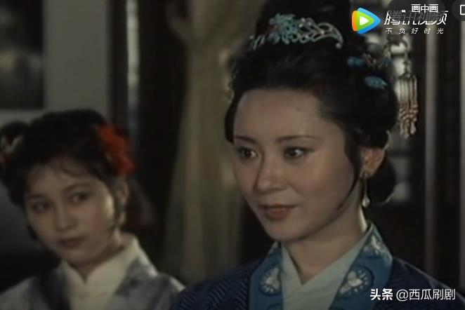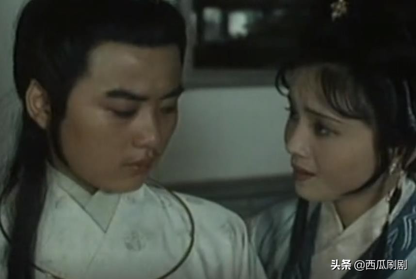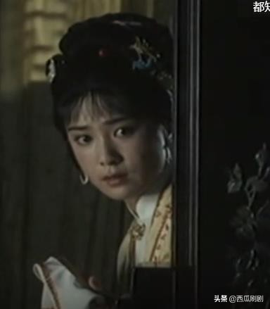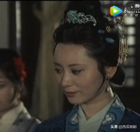 这段是宝钗来看宝玉,袭人坐了半天也累了就出去走走,宝钗就拿起袭人为宝玉绣的肚兜继续绣,宝玉在睡梦中拒绝金玉良缘。傅艺伟的宝钗此时表情就有些伤感了,大概也是爱慕宝玉的吧。