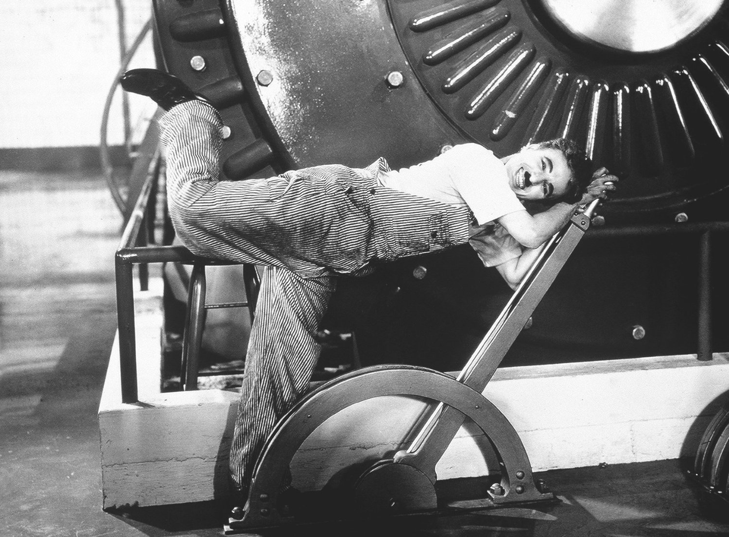 饱受折磨的查理又重新回到岗位上,他的工作是双手拧螺丝,由于长时间重复同一个动作,查理逐渐变得精神恍惚,一时间控制不住自己的手,他开始疯狂地拧生活中任何神似螺丝的东西,比如同事的鼻子耳朵、女同事衣服上的纽扣,魔怔了一样。