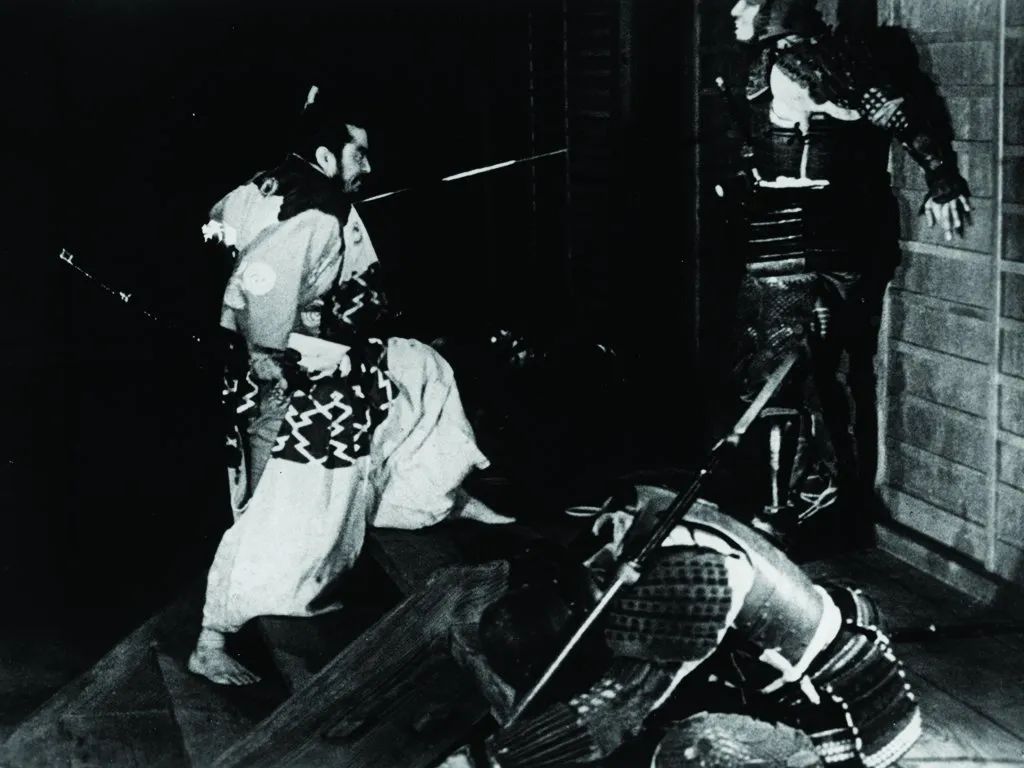 黑泽明所处的战国内战时期尽管在变革形式上与英国有所差别,但在精神实质上大同小异。黑泽明极其善于展现日本文化体系下人性的不同截面,比如《罗生门》中的强盗多襄丸和《七武士》中的勘兵卫,如同硬币的两面,代表着自私贪婪与光明正义的人性。这种精神在《蜘蛛巢城》中通过舞台剧式的呈现方式进行了升华。