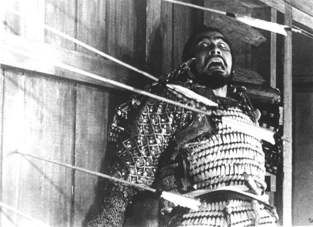 日本电影大师黑泽明始终沉迷于武士阶层的研究,在艺术创作时对莎翁的戏剧产生了浓厚的兴趣,《麦克白》受到欲望蛊惑杀害贤君主、暗害忠良的故事与日本内战时期有诸多相似之处。1957年,黑泽明将其改编成了《蜘蛛巢城》,将风格化的无韵语言、能乐的表演方式、幽闭的宫殿承包和人心的欲望、人性的薄凉融为一体,试图完成对大师精神的致敬和传承。