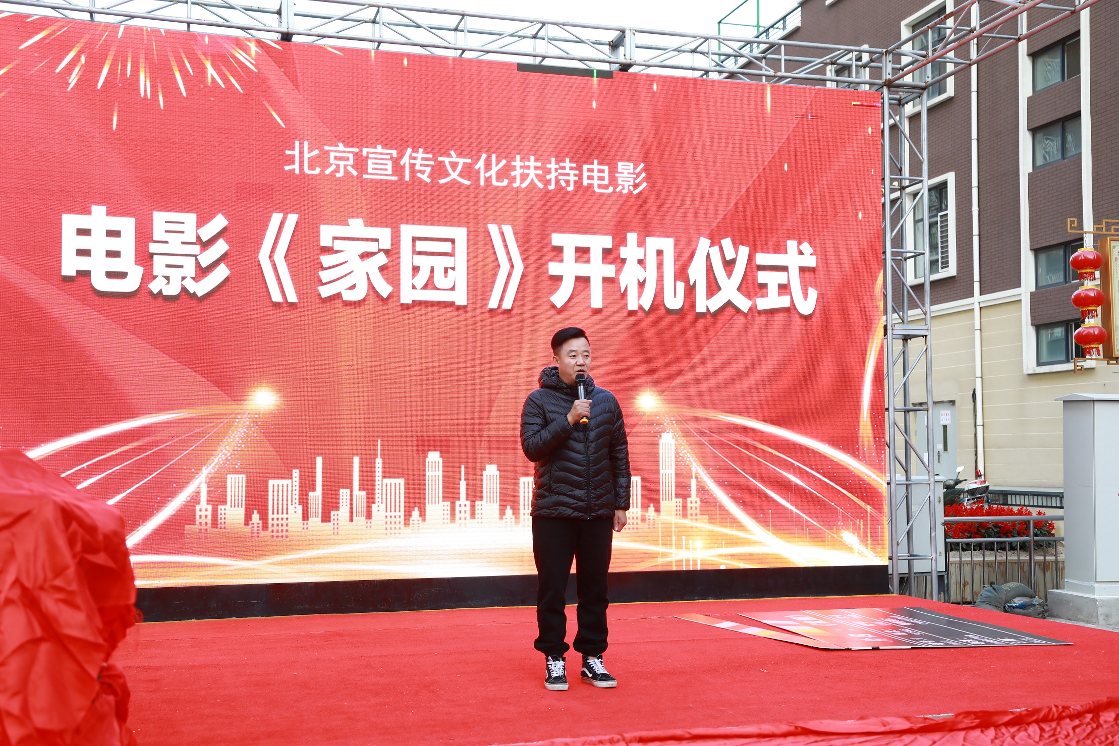 由北京三笙影业有限公司出品,北京市委宣传部参与指导,市发改委、市文联、昌平区委区政府、区委宣传部、区文化旅游委、区文联等多部门联合摄制的宣传文化扶持电影《家园》,将于霍家营社区进行主场拍摄。经过前期的商谈与准备,电影的开机仪式于10月22日早8点在社区文化广场举办,社区领导、剧组工作人员与参演人员参与了本次开机仪式。