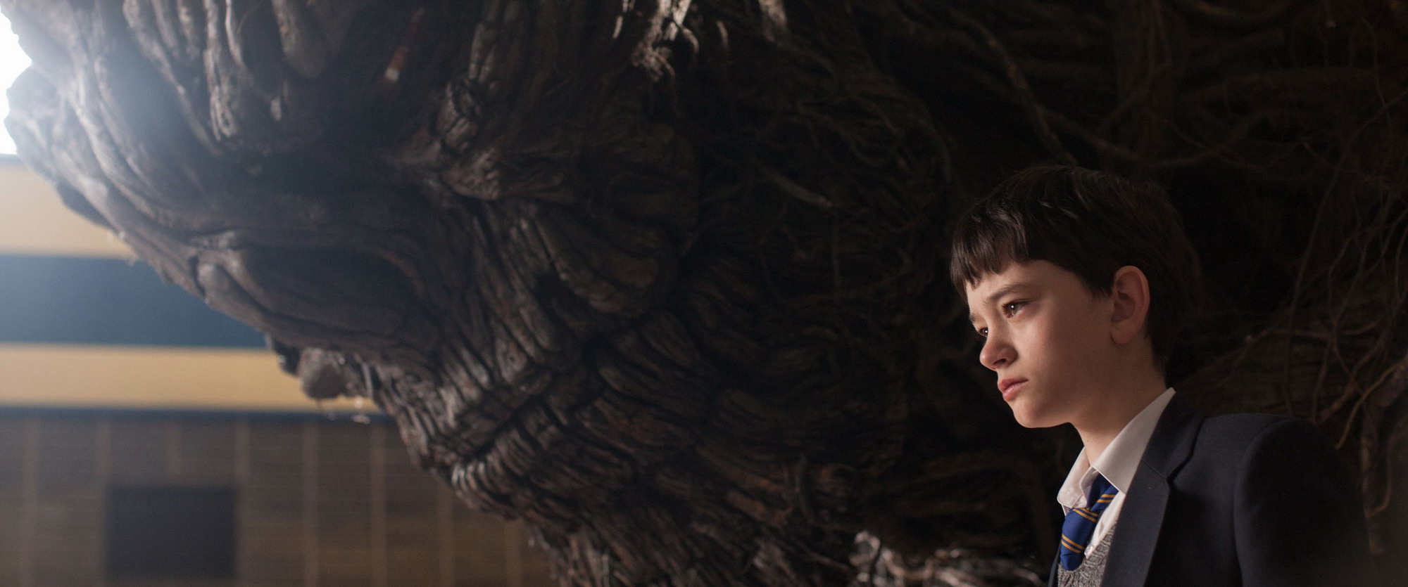 本来以为电影是带有童话色彩的“治愈系”,讲述一个男孩怎样面对妈妈被病魔折磨的故事,看电影后才发现,影片的风格和体量是成年人也不一定能够深刻理解的暗黑文艺片。影片中的“树精”根本就不是《银河护卫队》里扭着屁股跳舞的“格鲁特”,而是精神世界的严肃导师,容不得半点的自欺欺人,他的枝条永远在鞭挞你的思想,直到你承认自己到底在想什么,直到你接受人生的残忍。