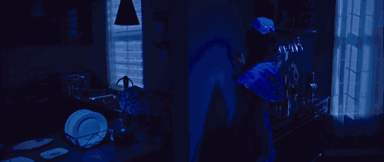 上面这两个是女主在一个小趴体上突然间看见的情形。房间里他的同伴们的都如僵尸般木然而立,通过不同的方式敲打了一个节奏,那是女主经常能够听见的恐怖的节奏。