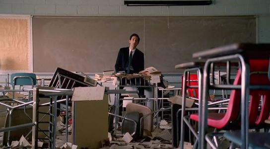 当充满了绝望气息的《超脱》迎来结尾时,又还有什么,能比艾伦坡那首更让人绝望的长诗,更加压抑和脆弱呢。面对满目疮痍的教室和内心,亨利喃喃自语: