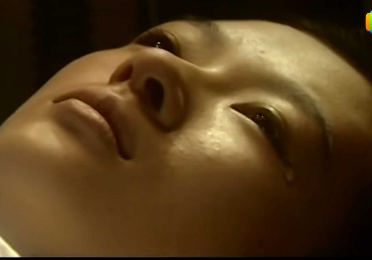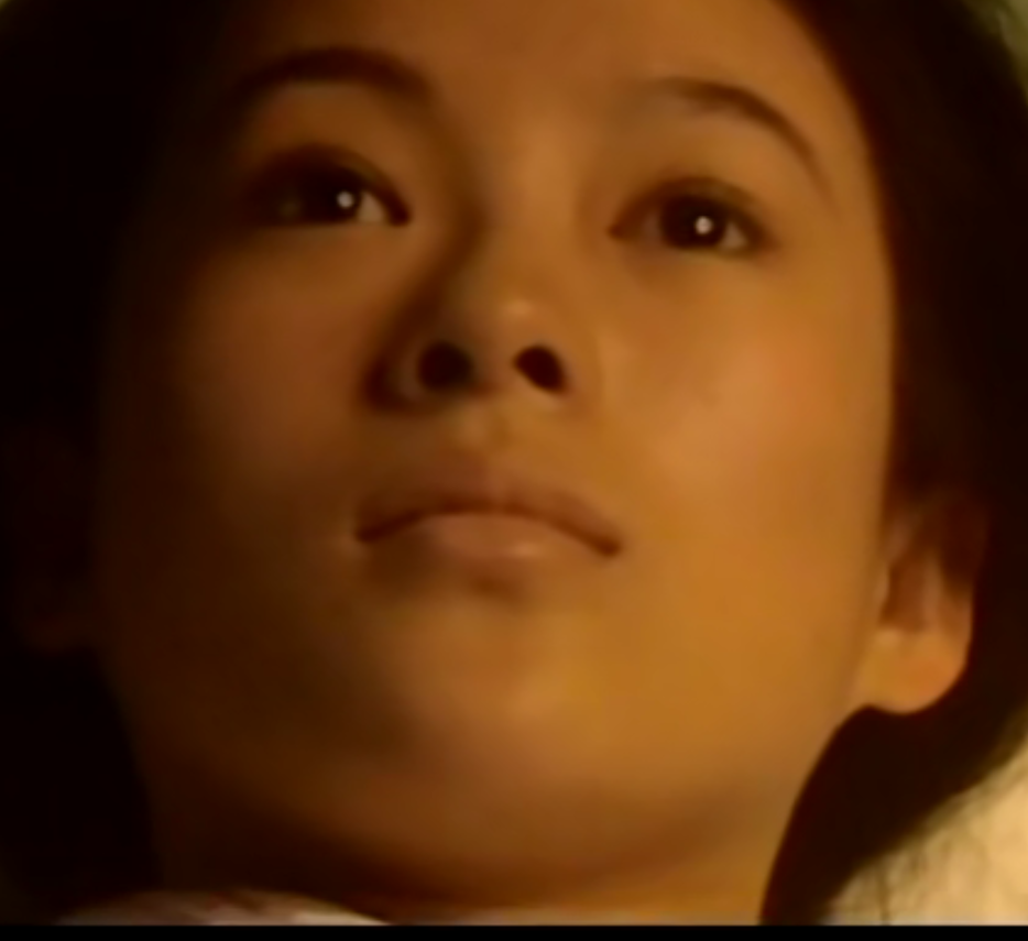 这是18岁癌症复发将要去世躺在床上的表情,如果我不确定章子怡还好好的活着,真的会认为她真的马上就要离开这个世界了。虚弱无神的眼神加上昏黄的灯光,真的把一个癌症病人将要离开人世的样子演活了。