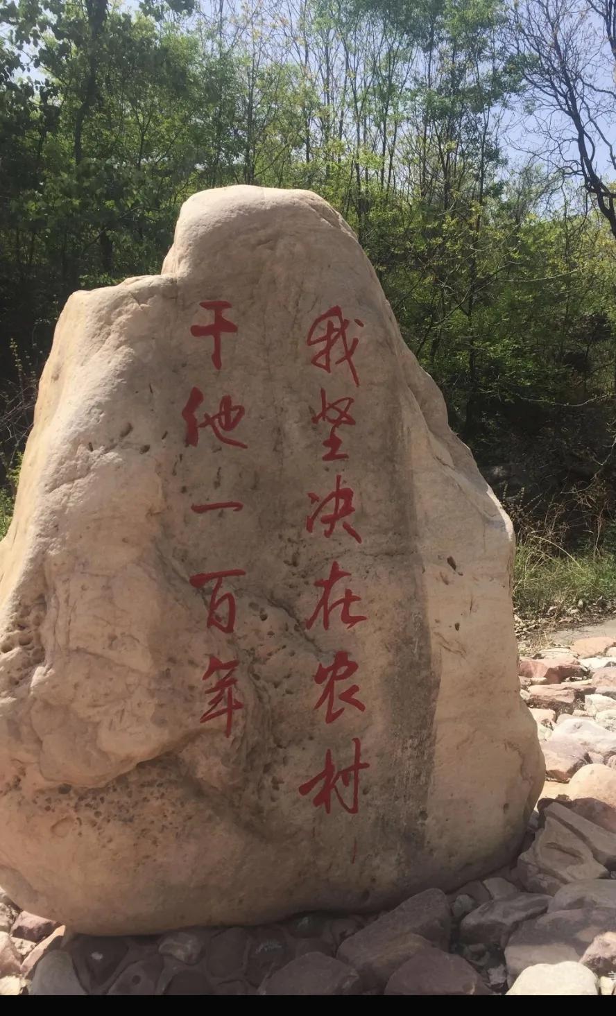到底是到一个新景点有些好奇新鲜,边走边欣赏路两边的风景,走的还算顺利。路的两边几乎全是“朝阳沟”文化,一座座石碑上均雕刻有豫剧《朝阳沟》里面的唱词,从开头栓宝妈盼银环来山里开始,到银环进山,一直唱到栓宝的家,如:千年的荒山栽上树,万年的旱地流成河;朝阳沟人亲地可爱;我决心做一个有志青年;有文化,能劳动,人人尊敬;我坚决在农村干他一百年……等等。