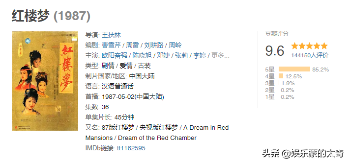 提起《红楼梦》,大家首先想到的便是87年欧阳奋强、陈晓旭的电视剧版,虽然这些年“红楼梦”的故事一直不断地被影视化,但是始终难以再现经典,而87版的豆瓣评分至今依然保持在了9.6的近乎满分状态,影响力可见一斑。