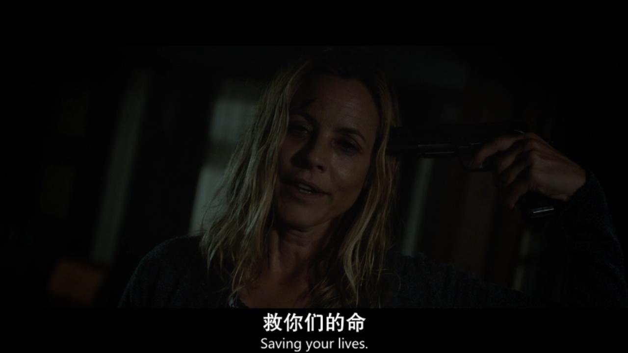 就在戴安娜即将杀死女主时,母亲举起警察掉落的枪抵住脑袋,冲着戴安娜说到“你再也别想伤害我的家人”扣动扳机,戴安娜顿时烟消云散。