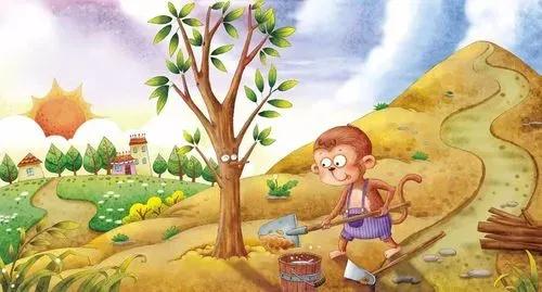 小猴听了顿时蔫了下来,这么圆润的桃子,不尝尝可惜了。狐狸见状,又说道“不过,我已经吃腻了,看你这么喜欢桃子,愿意忍痛割爱和你换我的桃树”小猴两眼放光,一直追问“真的?你真的愿意和我换?”狐狸点点头,小猴欢呼雀跃。“以后这棵桃树就是你的了”说完就往山坡上走去。小猴见狐狸走远了,赶忙摘下一颗桃子,看着手上又大又圆的桃子,小猴觉得自己赚到的同时迫不及待的咬下一大口,桃子又酸又涩,小猴被酸得直流口水,知道自己被狡猾的狐狸骗了,气狠狠的将桃子扔掉,想起自己甜滋滋的桃子,顿时后悔不已。