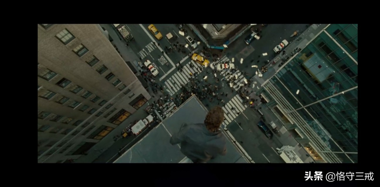 谁曾意识到这个站在纽约罗斯福酒店视野最好的2105房外墙壁边上作势要跳楼的男人,原来真实的目的就是要吸引警方与吃瓜民众的注意力。一场在纽约视野开阔的酒店外墙的惊险刺激的跳楼秀,一方面吸引了警力的注意,一方面恰准时间制造群众的尖叫来掩护弟弟要靠爆破潜入保险室去偷出被掩盖的罪证“价值连城的帝王钻”,再一方面借机向群众释放出自己被冤枉坐牢的原因,借助媒体的舆论来压制被巨额收买的纽约警局干预……最终让与警局合谋骗取巨保险的珠宝商老板与腐败的纽约警局全部捣毁