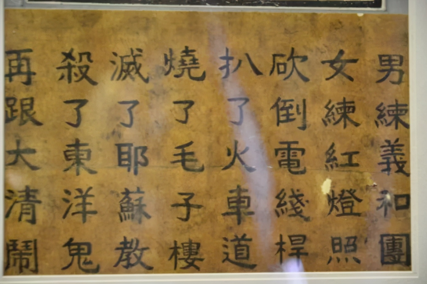 “男练义和团,女练红灯照。砍倒电线杆,扒了火车道。烧了毛子楼,灭了耶稣教。杀了东洋鬼,再跟大清闹。”