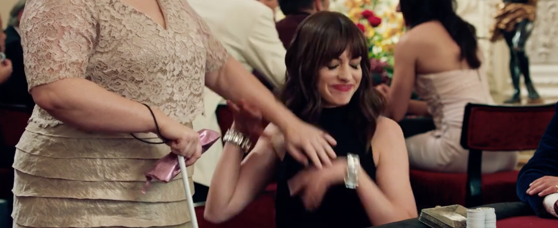 蕾蓓尔还扮演盲人狂摸了一把海瑟薇的胸,非常浮夸的黑了一把海瑟薇的扁平身材,称“怎么是一个男人”,把海瑟薇气得抓狂。预告就已经非常精彩,现在已经开始期待正片了。据了解,该片将在5月10日于北美上映。